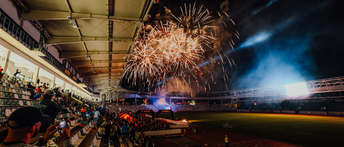 Rund 1.000 Läuferinnen und Läufer sind beim KickOFF dabei gewesen, um auf der Tartanbahn der neuen Arena nicht nur an den Bambini-, Kinder- und Staffelläufen teilzunehmen oder anschließend einfach so ihre Runden zu drehen – sondern vor allem auch, um den offiziellen Anmeldebeginn des DresdenHALF zu feiern, Feuerwerk inklusive. „Das kam echt gut an“, sagt Egger. Punkt 19 Uhr fiel an jenem Freitagabend der Startschuss für den StaffelHALF, bei dem sich vier Läuferinnen und Läufer die Halbmarathondistanz aufteilten, und zugleich wurde die Anmeldung geöffnet.